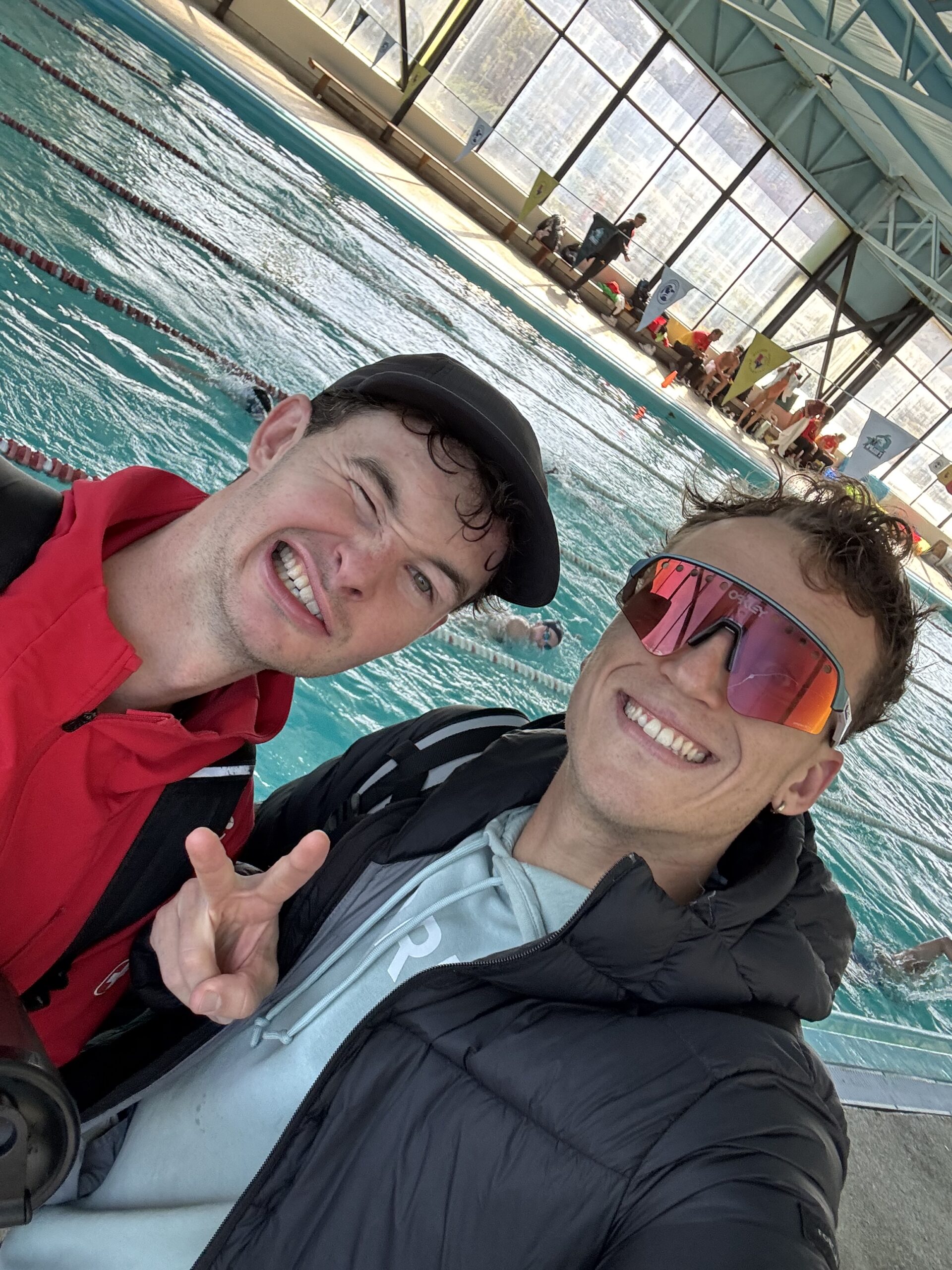 Départ natation compliqué. Je me suis senti sans énergie dans l’eau (avec la maladie, je n’ai pas nagé de la semaine. uniquement 2,5k la veille), du mal à nager, trouver des sensations, du rythme. Je sors donc loin de la tête de course. Monté sur le vélo je me sentais un peu mieux. Je sentais l’énergie du jour qui commençait à venir. J’ai pu réaliser une belle partie vélo, mais lors de la pose du vélo, les jambes ne répondaient plus et je sentais que je n’avais plus de jus. J’ai du batailler pour rester avec les premiers de mon groupe (deuxième groupe, échappée 30sec devant environ). C’était challengeant car je sentais vraiment que je devais puiser dans le peu de réserve qui me restait.